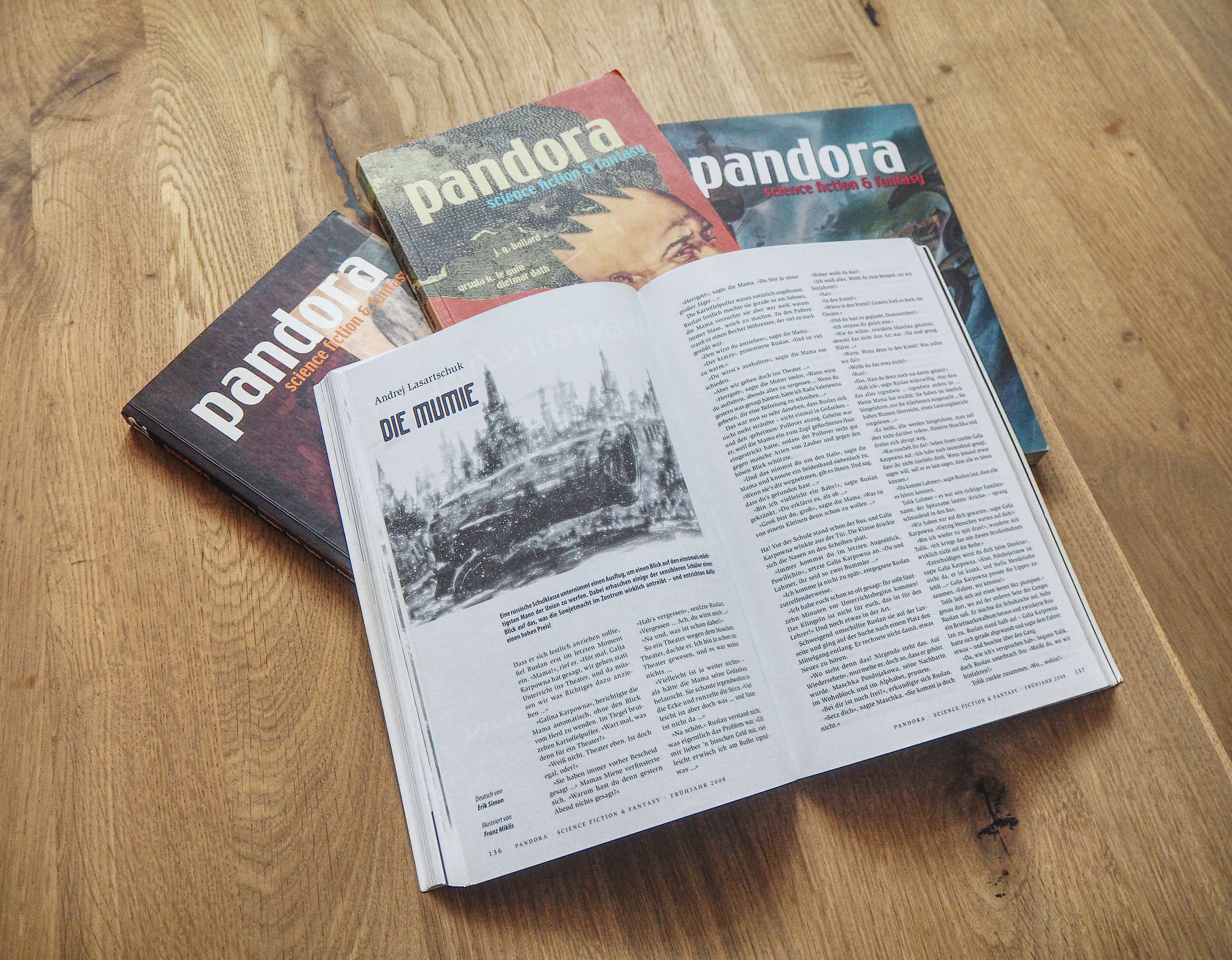 Einen kleinen Geheimtipp möchte ich noch mit dem Pandora Magazin beisteuern: Das Pandora Magazin war vor einigen Jahren der Versuch, anspruchsvolle internationale Kurzgeschichten und Artikel auf hohem Niveau in einem ansprechenden Format zu veröffentlichen. Die Auflistung der Beteiligten liest sich auch heute noch wie das Who is Who der phantastischen Literatur.
