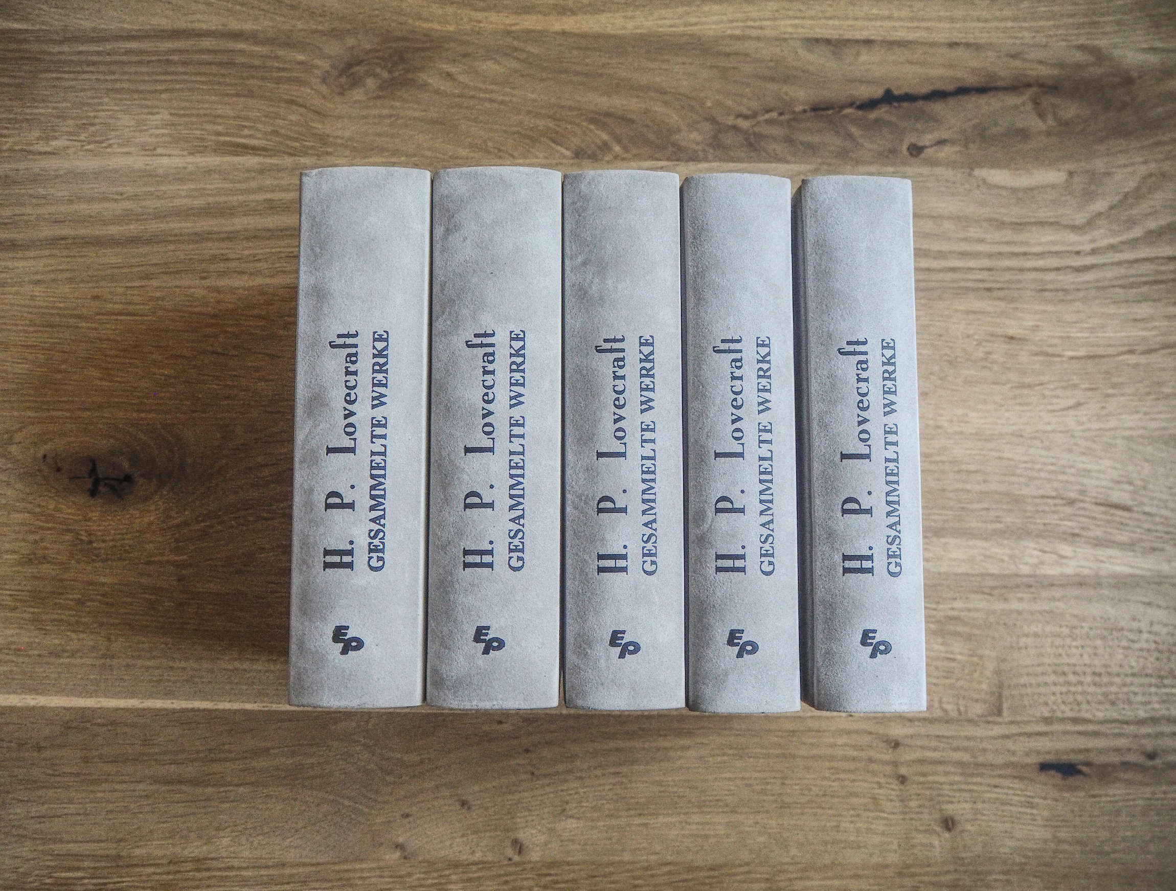 Bei meinem ersten Beispiel handelt es sich um die gesammelten Werke von H. P. Lovecraft. Abgesehen davon, dass es sich bei ihm um den noch vor Stephen King einflussreichsten Horror-Autor aller Zeiten handelt, weiß auch diese Ausgabe durch äußere Werte zu überzeugen. Hervorzuheben ist dabei vor allem der Samteinband, der in dieser Größe noch wesentlich eindrucksvoller wirkt als die kleinere Variante in Charles Baudelaires Wein und Haschisch.