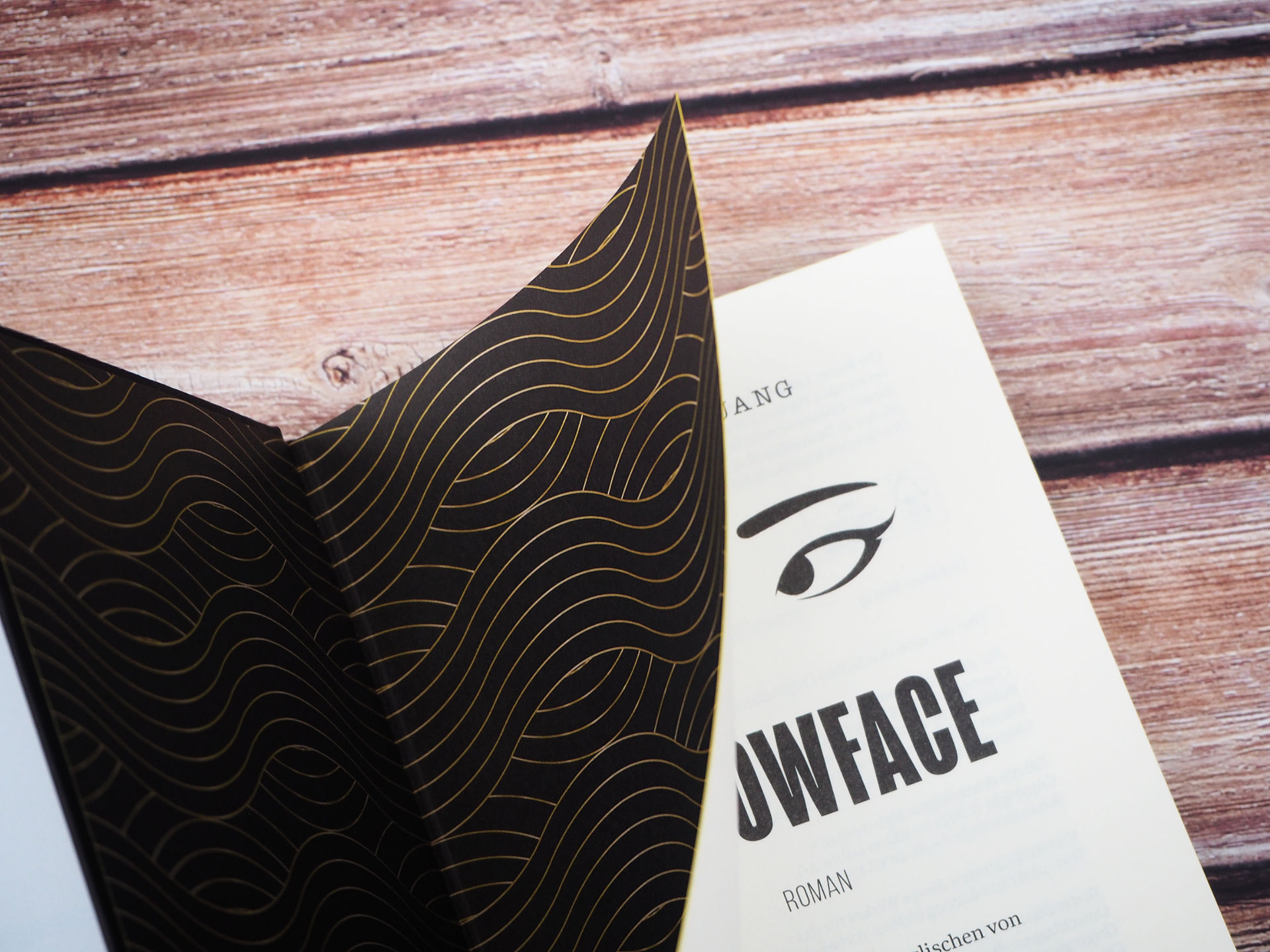 Mir gefällt die Aufmachung von dem Buch schon ganz gut. Der gelbe Umschlag ist zwar eher schlicht, aber zusammen mit dem bedruckten Buchschnitt, der Farbgebung, dem schwarzen Lesebändchen und auch dem Vorsatzpapier, gefällt es mir schon sehr gut. Richtig gelungen finde ich den Buchdeckel, der mit dem Titel von Junes Buch bedruckt ist, wobei der Name von Athena durchgestrichen und mit dem von Junes Pseudonym ersetzt wurde. So ein gestalterisches Element, der den Inhalt von dem Buch aufgreift, finde ich sehr gelungen. Überhaupt macht der Eichborn Verlag bei der Buchgestaltung sehr viel richtig, was mir sowohl bei Washington Black, als auch bei Babel sehr gut gefallen hat.