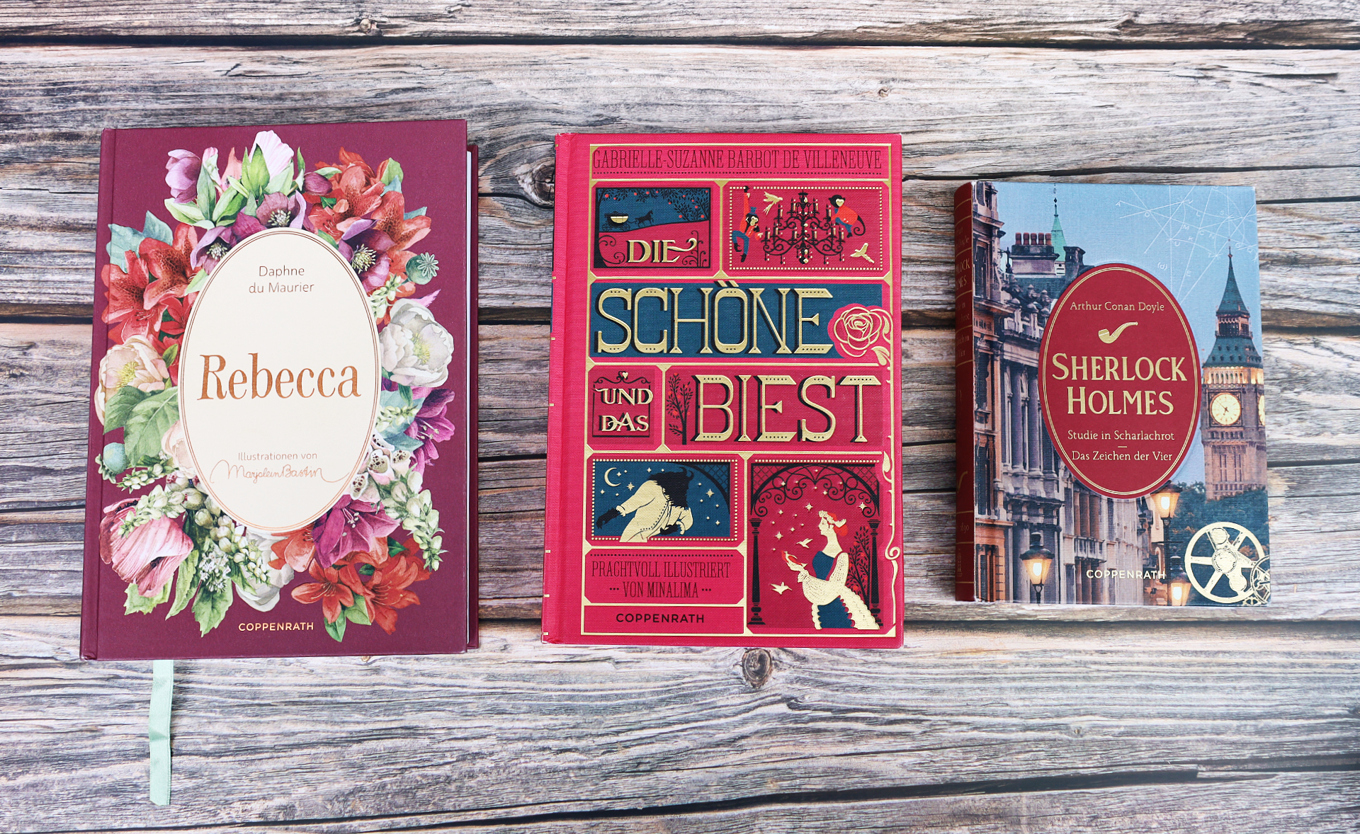 Den Coppenrath Verlag kannte ich lange Zeit nur von diesen elenden kleinen Ecken in den Bücherläden, wo dann die Kinder immer hängen geblieben sind und irgendeinen überteuerten Lillifee-Captain-Sharki-China-Plastikschrott haben wollten. Und man immer Nein sagen musste und sie dann mühselig in die Buchabteilung zurücklocken musste. Tatsächlich hat der Verlag aber schon seit Jahren wunderschöne Bücher im Programm, die mich für diese Spiegelburg-Papa-Hölle mehr als entschädigen. So hat der Coppenrath Verlag zahlreiche von MinaLima gestaltete Bücher, sehr schicke Neuauflagen von Sherlock Holmes oder auch eine sehr prächtige Ausgabe von Rebecca. Auch die Schmuckausgaben von Poe sind einfach wunderschön. Was die Bücher auszeichnet, sind kleine Beilagen, die zwischen den Seiten zu finden sind. Das wertet die Bücher nochmal richtig auf und es fühlt sich beim Lesen einfach gut an, wenn man zwischen den Seiten plötzlich einen Briefumschlag mit einem Gedicht aus dem Roman findet, einen kleinen Werbezettel für das Hotel oder Hintergründe zu dem Roman. Prächtige Bücher also aus einer eher unerwarteten Ecke und eine Sparte, die über die Jahre immer weiter gewachsen ist. Ich hoffe der Coppenrath Verlag bleibt dabei, ich liebe diese Bücher und der Verlag wird dabei für mich zum richtigen Geheimtipp.